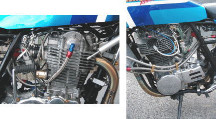 ヨシムラの89mmピストン(圧縮比11.5:1 400クランクの場合9.8:1)とノーマルクランクの組み合わせで排気量は