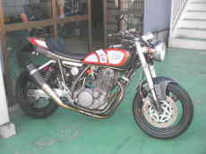 まず仕様、TZR250(3XV)の倒立に前後ホイール、スイングアームはFZR400RRのデルタボックス、ブレンボラジアルにブレンボレーシング、あああセミレーシングマフラー、エンジンはもちろん!595のあああスペサル仕様、カムはヨシのST-2、まぁ世に有名なうsカフェの典型ですな。