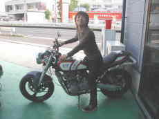 んでここで1大イベントが待っておりました!社長の佐藤さん直々に、スタッフの方になにやらゴショゴショ、んでスタッフの人が2階の倉庫に登る、しばらくして下りてくる・・・そこに待っていたのは・・・「うぉぉぉぉ〜〜〜〜!!!」雑誌で見たことあるうsカフェ!しかも出来たてホヤホヤ、湯気ボ〜ボ〜!タイヤを見ると・・・TZR250(3XV)のホイールに装着されたBT-090・・・出来たてホヤホヤ、ヒゲボ〜ボ〜!要するに新品ってことが言いたいのです(理解して)