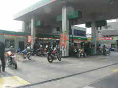 無事全員集合したところでいざ出発!先導はもちろんこの人!赤の大佐ことtact*さん、んでシンガリは蒼の大佐NARIさん、両巨頭に挟まれ右往左往・・・とりあえずある程度の距離を走るってことで全員でガススタに突入、総勢10数台にもなるSRの集団、当然爆音・・・というか大爆音(笑)、しかもこんな輩のような集団が一斉にガススタへ、休日朝のお暇なひと時を謳歌するガススタの店員さんも突然やってきた変態集団(失礼)に唖然呆然、とりあえず目の前に群がる変態を1台1台処理していくのに必死なご様子、そのくせ大して儲けにはならない、タチが悪い集団だと思っているに相違ないだろう(爆)