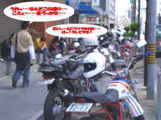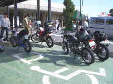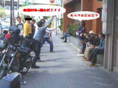 地元組・関東組と合流していざ・・・とりあえず休憩の為赤丸マークつきのサークルKへ!とりあえず後ろからデジカメで撮ろうとしたその時!・・・ポニーは突然振り向いて『ハイチ〜ズ』・・・バイク乗れてうれしそうねぇ〜ジョン吉っちゃん(笑) |