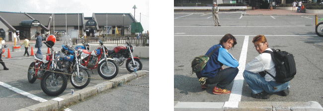 んで飯・・・マクドです(笑)、ホントに普通だなぁって思いつつもとりあえず飯。 むっさい男3人で食べてると、shigeさんからメールが・・・エンジンがかからないから出発できないとのこと、オイラに続いてshigeさんにもトラブル発生!とりあえず修理するから合流はかなり後になりそうとのこと。そでに不穏な空気が流れてるぞ・・・。 ちなみに当日のツーリング予定コース、六甲を登って神戸の西区にあるサイクルワールドの本店に行こうってなスケジュール。ちなみにこの時点ですでに危うい状況・・・今後はどうなるのだ!?とりあえず第一目的地六甲に向かうオジン2人とあづさ君、その後、あづさ君のブレーキは例のトラブル続出!直ってなかったのかぁ〜!!! |