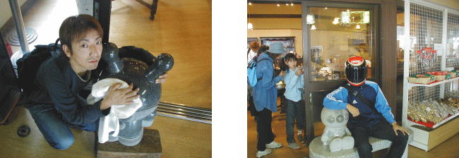 | さすがに観光名所ってことで休日ともなれば人も多い、この日も日曜日だったこともあって、けっこう人いっぱいいましたね。 んでそんな人だかりの中人目も気にせずパシャリ! 左はなぜかいたバイキンマンと戯れるあづさ君、ちなみにタオルで顔を拭いてあげている模様、写真撮る時はチャンとキレイにしなくちゃねぇ〜!!! で、問題は右の画像・・・そう・・・彼はジョン氏である・・・子供のヒーローであるアンパンマンに絡んでいる模様、しかもアンパン石になってるよ!カビルンルンにでも襲われたか!?こうなってしまっては単なる役立たずのアンパン・・・ジョン氏の言いなりだわ。 んで注目は後ろの親子2人組み・・・おきらかにジョン氏を不信な目で見ているぞ! 娘:「なんか変なオヤジがアンパンマンにからんでるよぉ!」 母:「あけみちゃん!見ちゃダメです!あういう大人にはならないでね・・・」 娘:「でもなんだかあの人楽しそうだよ、それになんでヘルメットかぶってるんだろ?」 母:「それはあの人がロリコンだからよ、あぁやって顔を隠してあけみちゃんみたいな年頃のコにいたずらするの!恐いでしょ」 娘:「うん、そうだね。あ〜ゆ〜変態なオヤジは放置プレイが一番だね!」 母:「さすがあけみちゃんね!もの分かりがいいわぁ〜、んじゃオヤジは放置してとっとと行きましょう!」 ってな感じの会話がなされたことでしょう、実はこのアンパンに近づけない子供が泣き出したりして結構騒ぎに・・・迷惑な話だわ(笑) では六甲山頂で何をしたかって言うと・・・スンバラシイ景色を見ながら物欲トーク(爆)、しかも結構長時間・・・これでサイクルワールドは中止決定だね。 |