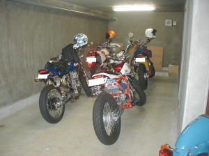 とりあえずいつまでも地べたに座り込んでしゃべってるわけにもいかないんで、ひとまずジョン家にバイクを停めて飯を食べにいくことに、この画像はジョン家の地下ガレージ・・・やっぱりオカシイ・・・怪しい・・・どうやらshigeさん、エンジンさんも同じことを感じたようだ・・・しきりにジョン氏を疑惑な視線で見ている・・・絶対・・・なんかあるな・・・次回、ジョンの秘密を探るべくがさ入れを決意する3人であった。 とりあえずその日は視察だけで立ち入り検査までは行わないでやったのだ。みんなオナカ空いてたしね、ちょっと離れたファミレスにジョン車、来週あたりにはオイラが貰う予定のアコワゴにて移動!これがオイラのものになるのねぇ〜!ジョン太っ腹じゃん! んでファミレスに到着、みんな飢えた獣の様に飯にむさぼりつく・・・この時だけはみんな無口なのね(笑)、んでその後は延々と物欲話のオンパレード、結局終了したのは深夜の12時、かよっちさんの電話がなけりゃそのまま続いてただろうなぁ〜、全く・・・このオヤジどもは・・・。 というわけでこれにて解散、みんなそれぞれの帰路についていったのだ・・・ってオイラはねぇ〜・・・やっぱりこの状態で帰るのは危険だから、明日バイク屋に預けて帰ることに、というわけでジョン家にてもう1泊・・・ホントにお世話になりましたm(__)m |