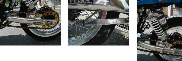 設定のスイングアームを使用している(250レプリカなどの足周りはほとんど純正よりもロングになっている)。