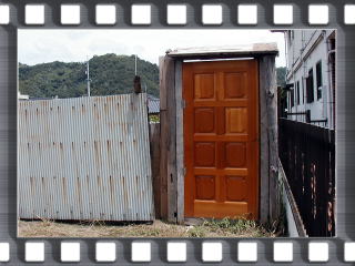 ボロな塀の横にやけに立派なドア・・・